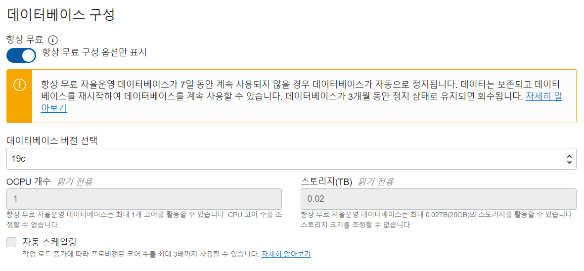 이미 테스트로 개인프로젝트를 올려 사용해봤는데, API를 요청해 100만건 넘게 누적했지만 속도도 전혀 느리지 않고 프리티어 데이터베이스임에도 개인프로젝트정도는 무난히 소화할 수 있을 듯 하다. 원래 이전에 MariaDB로 연결을 해놨었는데, 80만건정도가 넘어가니 간단한 쿼리임에도 검색속도가 너무 오래걸리도 하고 때마침 ATP가 Always Free이기도 해서 고심끝에 ATP로 변경하기로 했다.