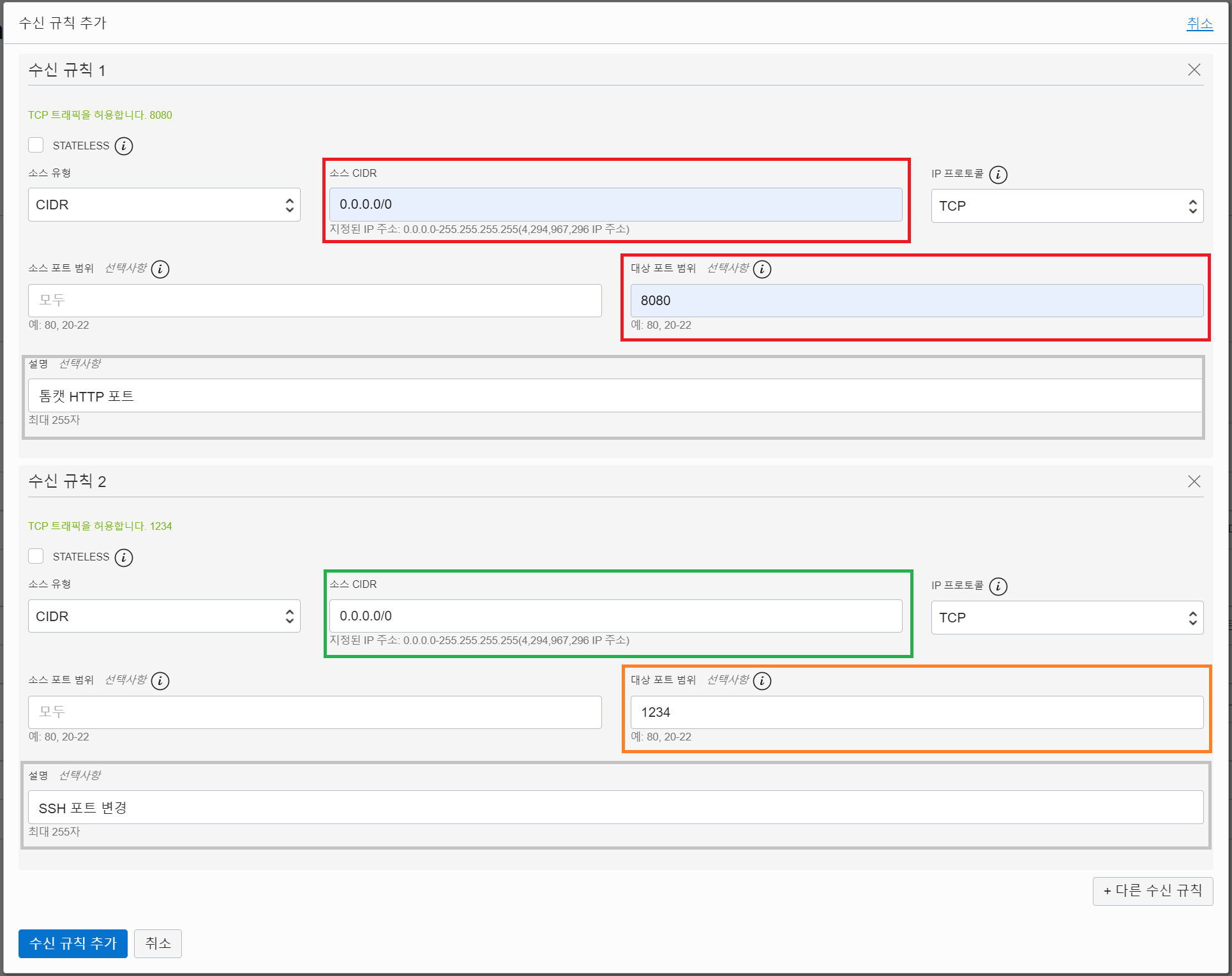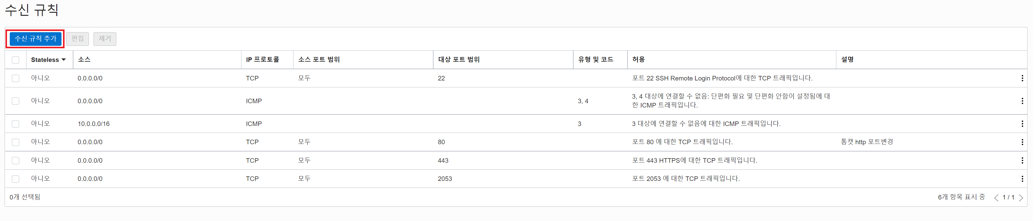 하지만 우리는 로컬서버가 아니기때문에 Oracle Cloud의 인스턴스에서도 방화벽규칙을 수정해주어야 한다.