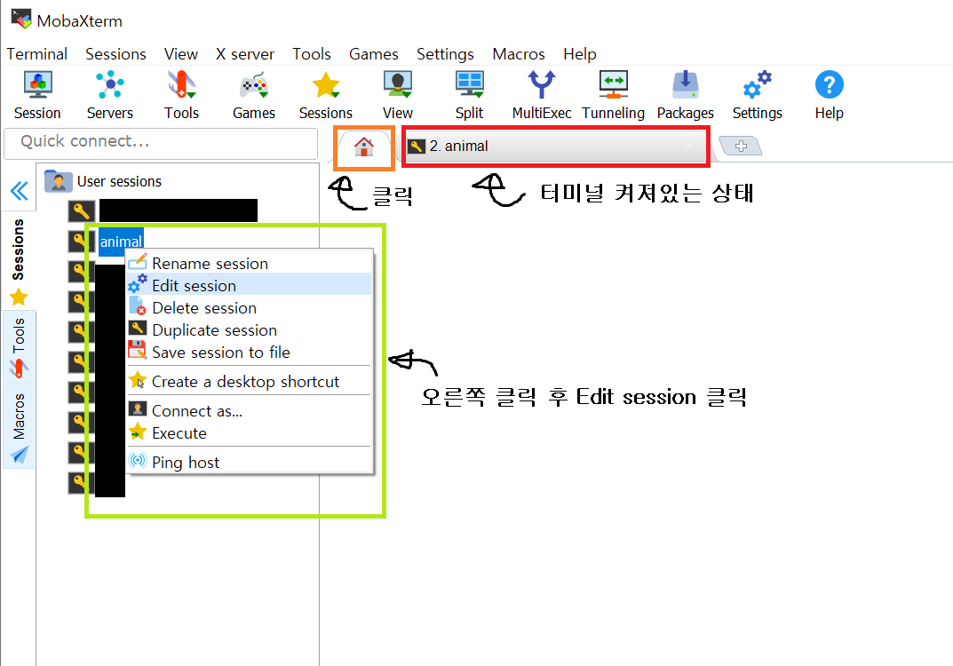 이전 포스팅으로 생성한 인스턴스에 접속해보자 준비물: Oracle Cloud 계정, 리전 완료된 인스턴스(와 인스턴스의 전용키), MobaXterm 프로그램 MobaXterm을 실행하고 Session을 생성 1번: 생성한 인스