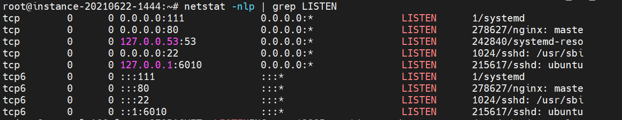 netstat -nlp | grep LISTEN //LISTEN 포트 출력