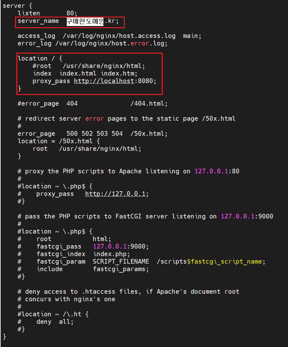 8080포트로는 tomcat이 돌아가고 있기 때문에 proxy_pass로 http://localhost:8080를 설정해주면 톰캣의 경로로 이동시켜준다. 이후 nginx를 재시작해주고 도메인으로 접근해보자