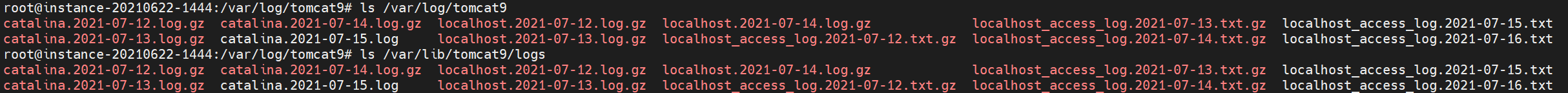 이후 /var/logs/tomcat9 폴더를 확인해보면 오늘, 어제, 2일전 로그만 남아있고 모두 지워진 걸 확인할 수 있다.