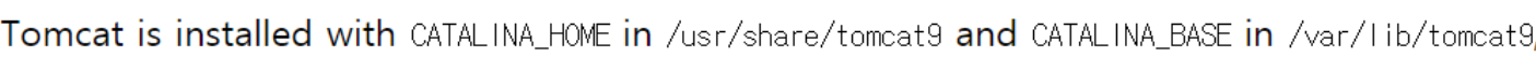 CATALINA_HOME은 실질적으로 Tomcat이 깔린 경로, CATALINA_BASE는 런타임 구성 루트이고 (톰캣을 여러개 쓸 때) 뭔가를 수정하려면 CATALINA_BASE에 있는걸 수정하라는 것 같다.