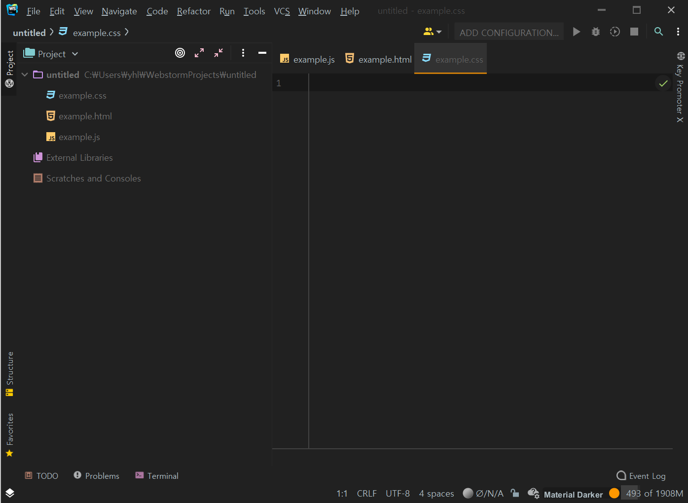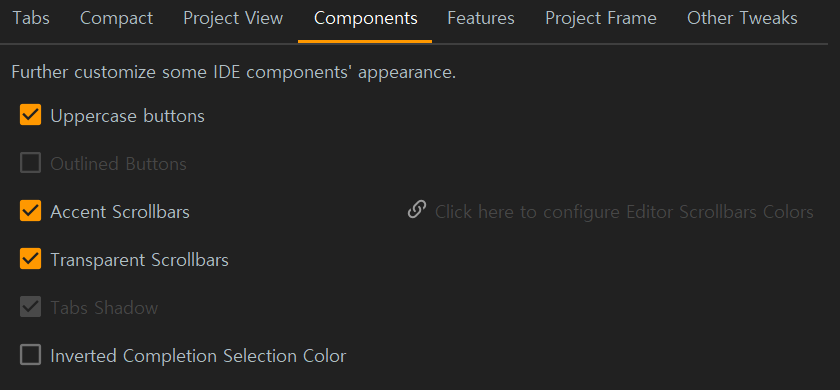 저는 Material Darker 테마로 선택해봤습니다. 역시 모든 색은 블랙이 진리인 것 같습니다.