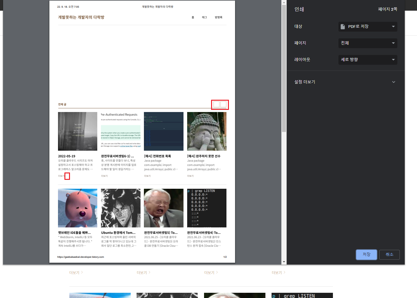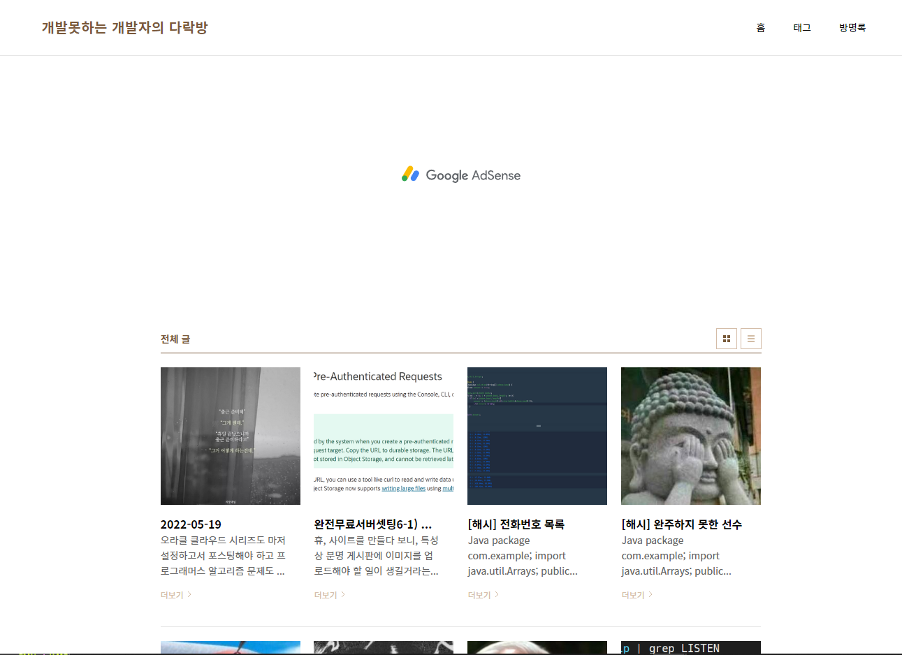 예를들어 본인 블로그의 메인화면이다.