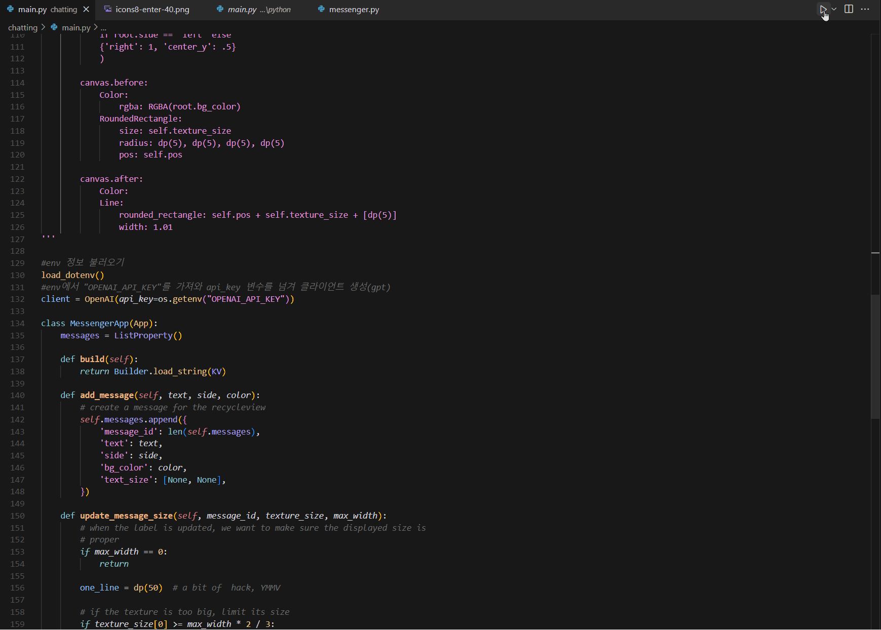 2024.01.19 - [파이썬] - 파이썬으로 ChatGPT와 대화하는 모바일 앱 만들어보기 2 [Python, OpenAI, Kivy, Cursor IDE]