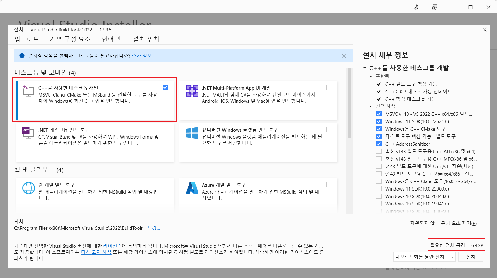 2. https://visualstudio.microsoft.com/ko/visual-cpp-build-tools/ 해당 사이트에 들어가서 Build Tools Download를 클릭 해 다운로드를 진행 (이미 깔려있으면 건너뛰세요)