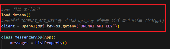 #env에서 "OPENAI_API_KEY"를 가져와 api_key 변수를 넘겨 클라이언트 생성(gpt)