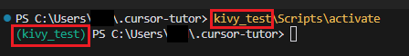 > python -m venv {만들고 싶은 폴더명} (나는 kivy_test로 만들었음)