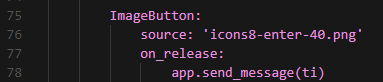 그리고 76번째 줄을 보면 source: ' data/logo/kivy-icon-48.png' 가 있는데 이 부분을 다운로드 받은 파일로 바꿔준다.